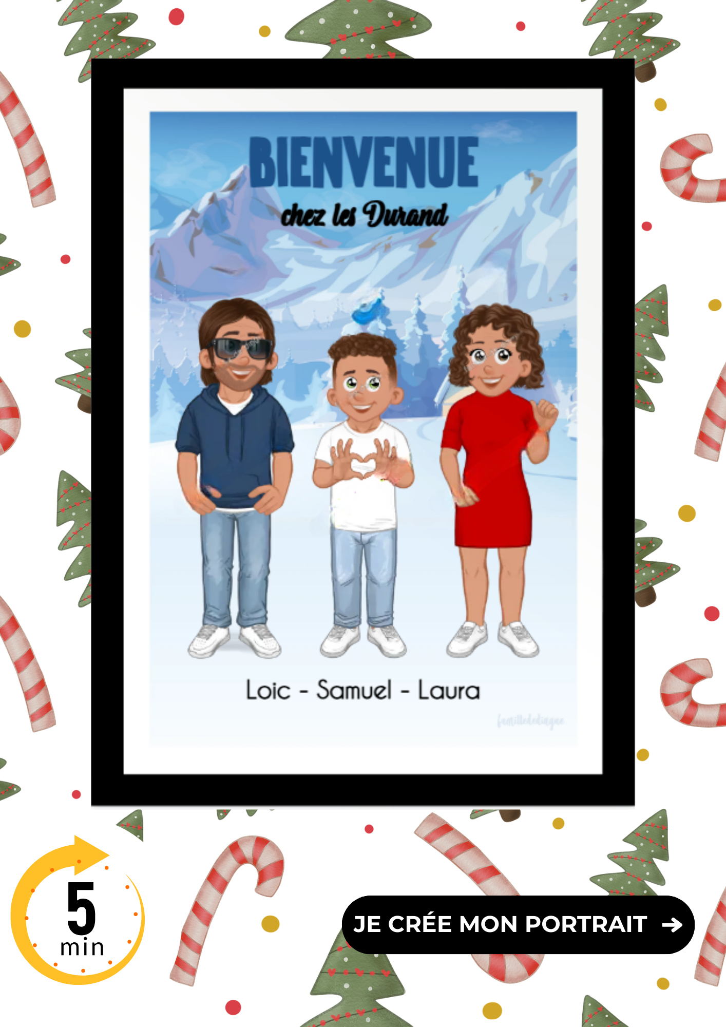 Vous êtes au bon endroit ! Pas de panique, Famille de Dingue a une idée de cadeau de noël insolite qui ne peut que faire plaisir à coup-sûr avec un portrait personnalisé pour tout le monde ! Un portrait personnalisé caricaturé peut être une idée de cadeau de Noël amusante et mémorable pour 2025.