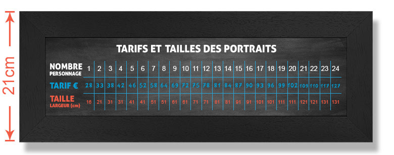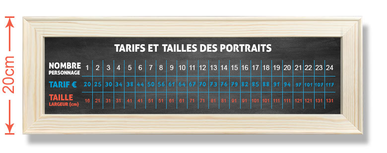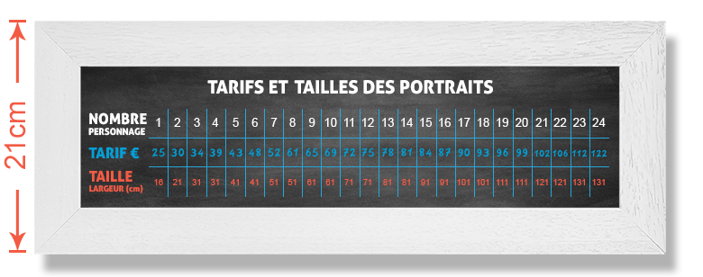 - La longueur du cadre en bois noir dépend du nombre de personnages que vous avez sélectionnés, voir tableau ci-dessus.